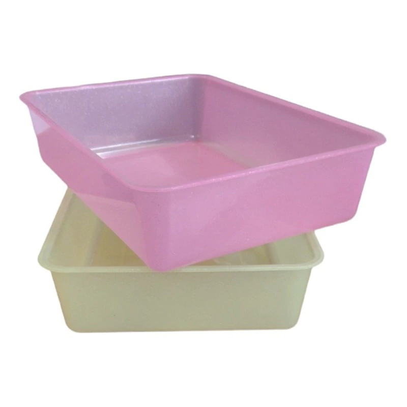 Sanitario para gatos transparentes con detalles de brillantina transparentes con color.