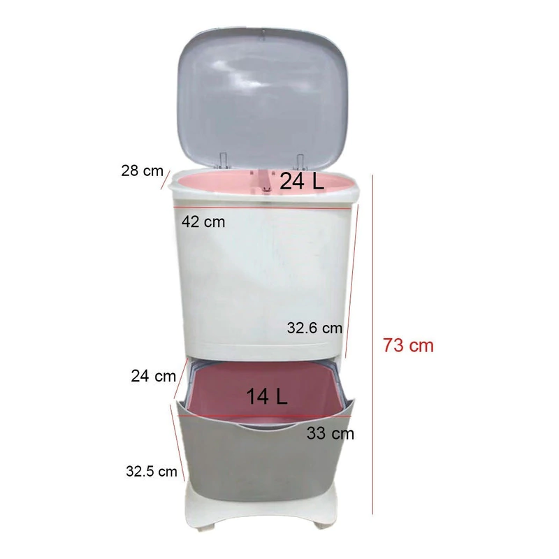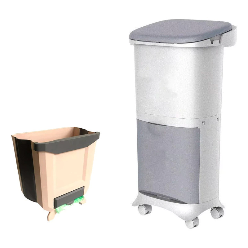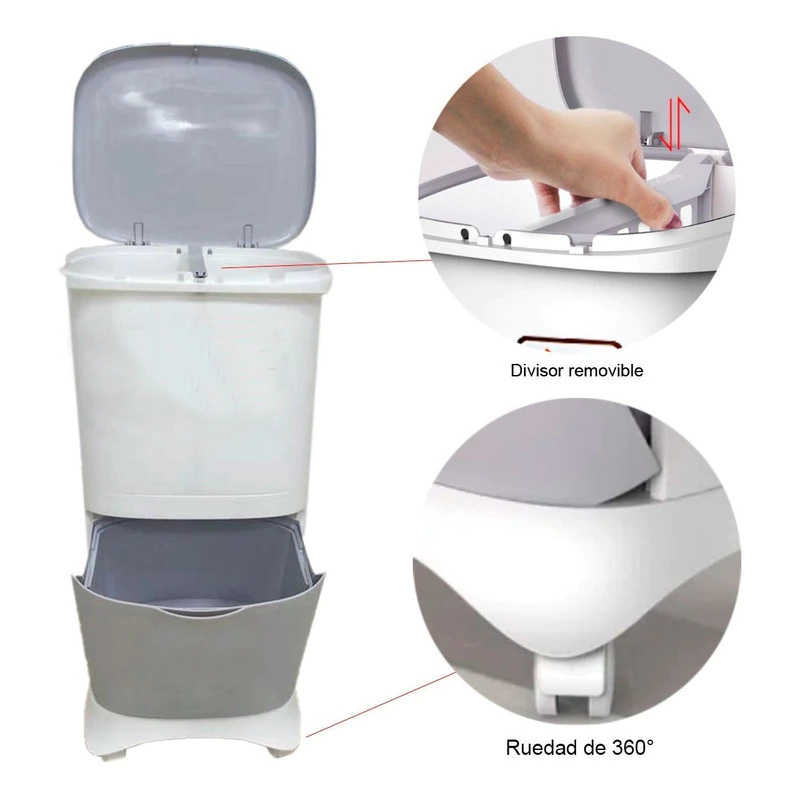 Uno de 38 Litros de 2 contenedores y un tacho plegable con dispensador.
