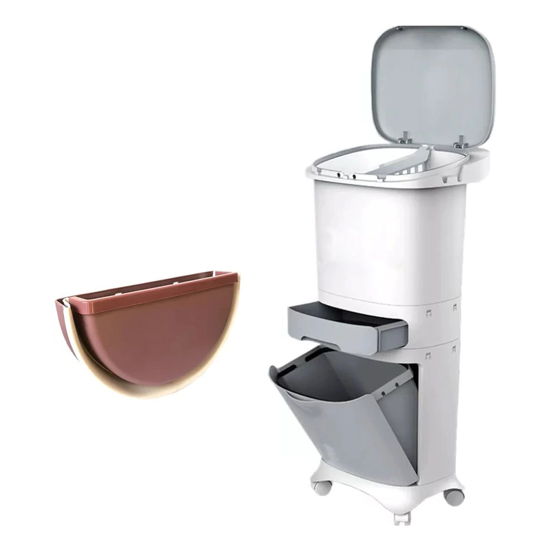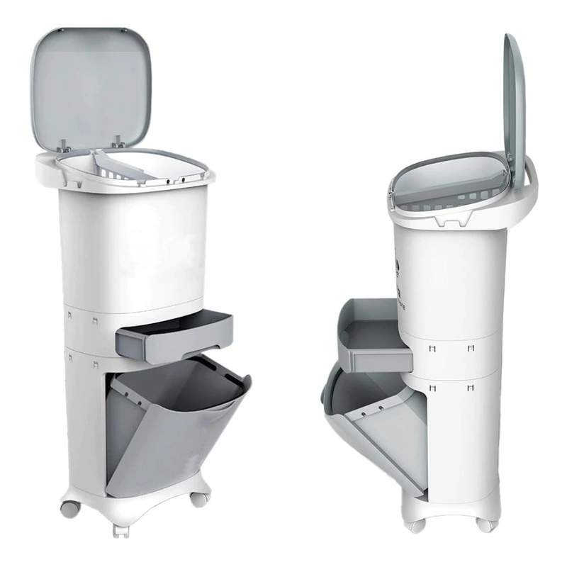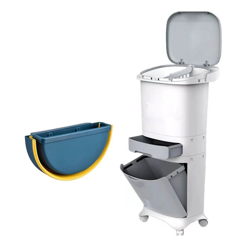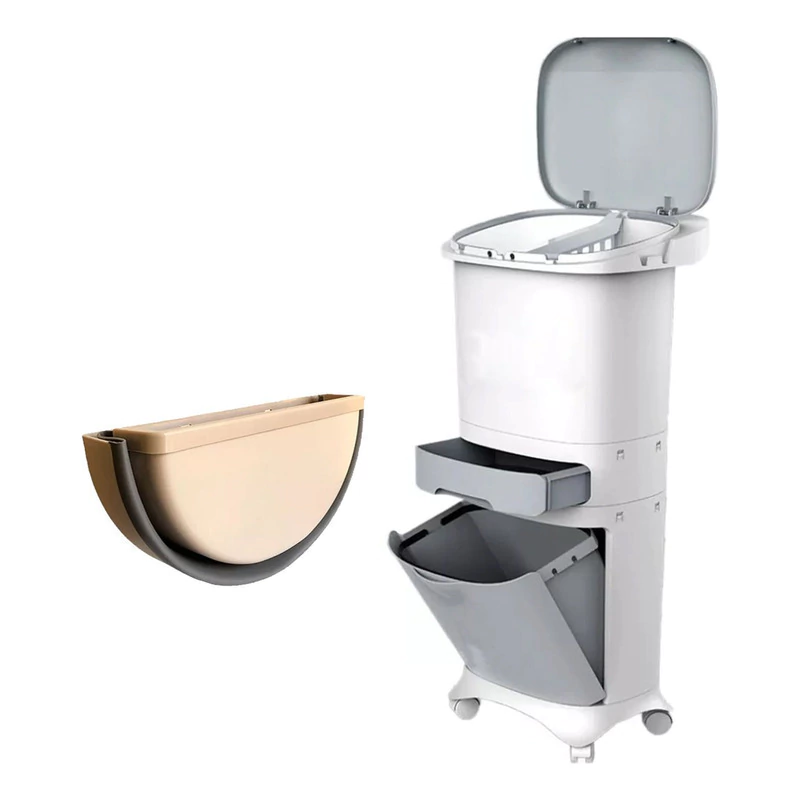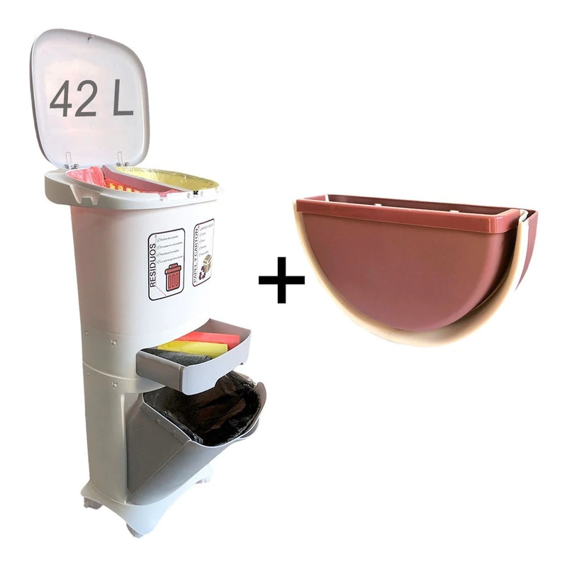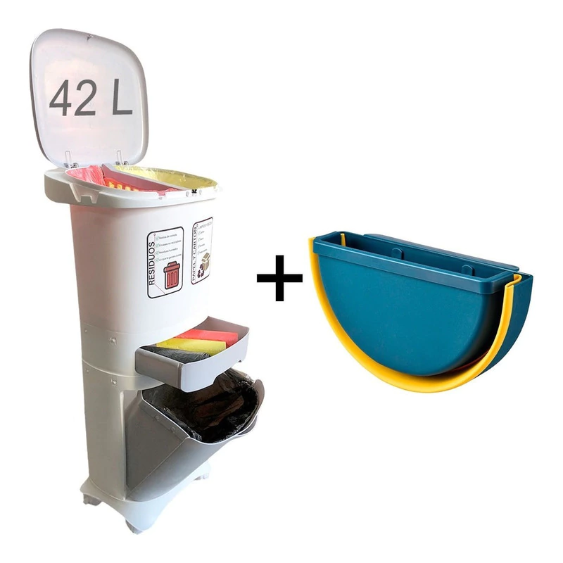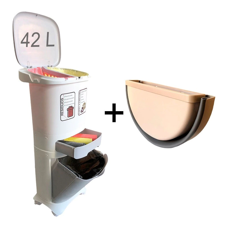 Uno de 42 Litros de 3 contenedores y un tacho plegable con dispensador.