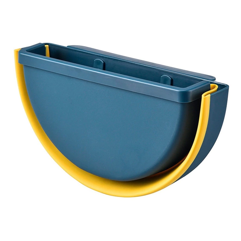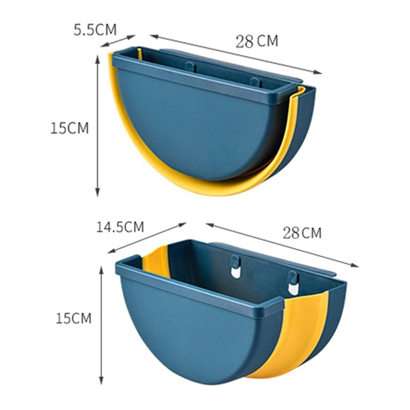 El cesto de basura estilo media luna plegable, puedes colgarlo de un cajón, o colocar el adhesivo en cualquier superficie y colgarlo de sus ganchos, es fácil de colgar y de guardar, ideal para el baño, cocina, habitación, es de plástico y silicón de alta resistencia.
