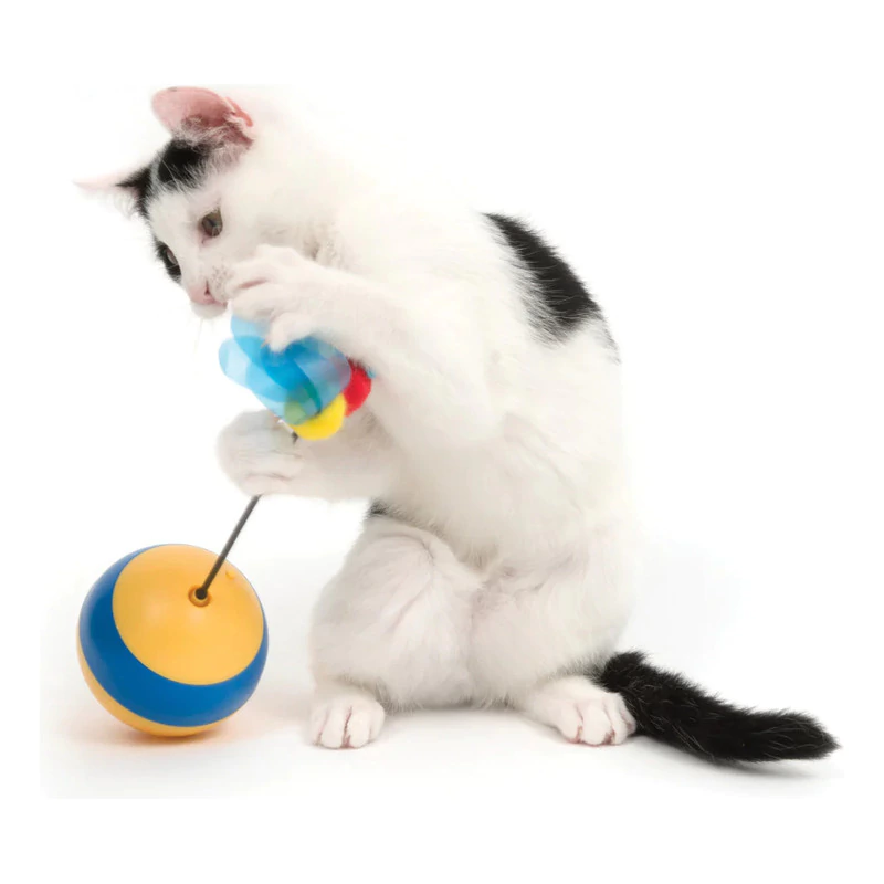 Fabricado en plástico duradero, el Spinning Bee Play es ligero y fácil de manejar, con dimensiones de 27 cm de altura y 8,5 cm de ancho. Su peso de 192 g lo hace perfecto para cualquier rincón de tu hogar. Este juguete no requiere control remoto, lo que simplifica su uso y permite que tu gato interactúe de manera autónoma.