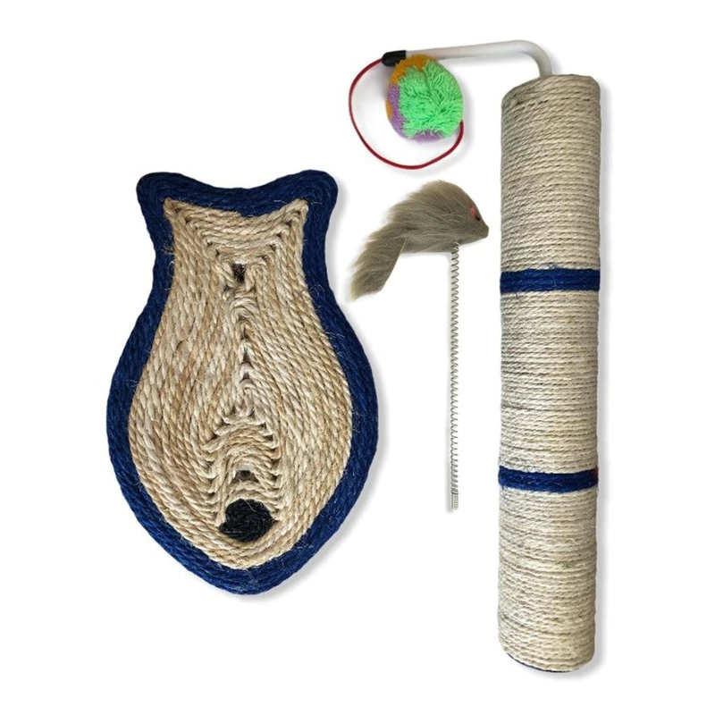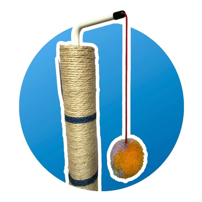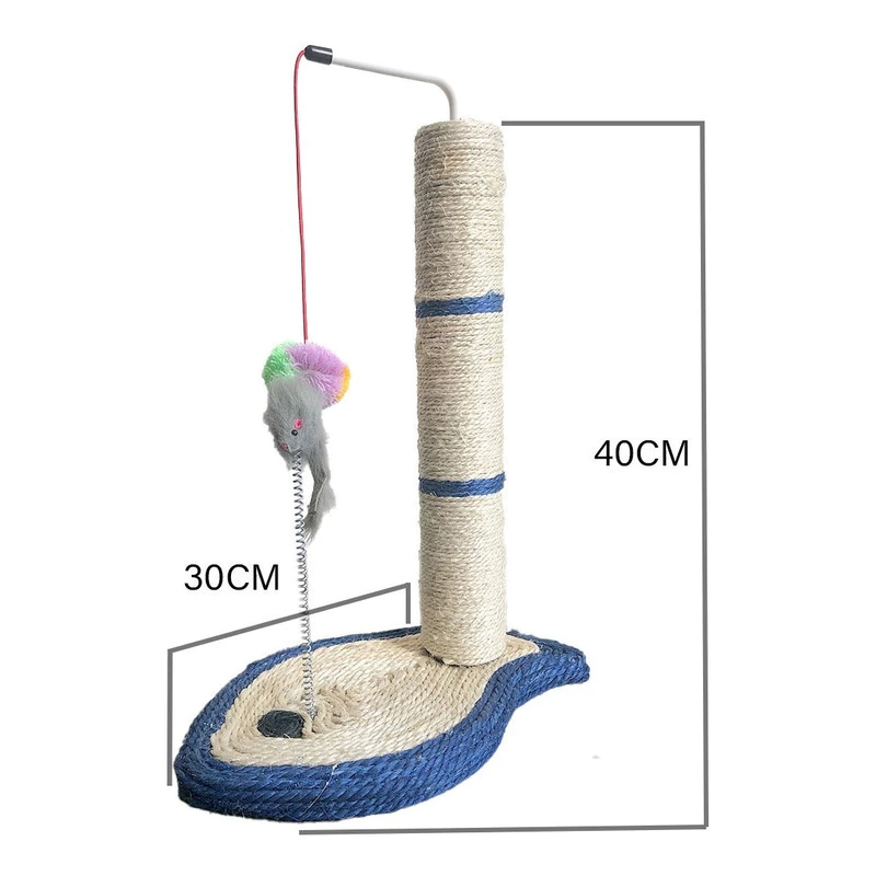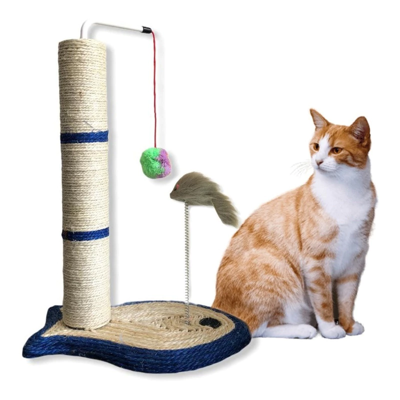 Juguete rascador anti estrés para gatos, con rata y pelota pompón para mayor diversión.