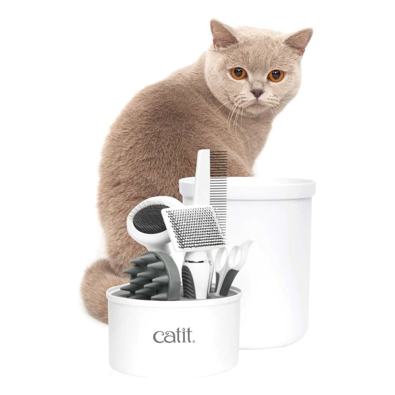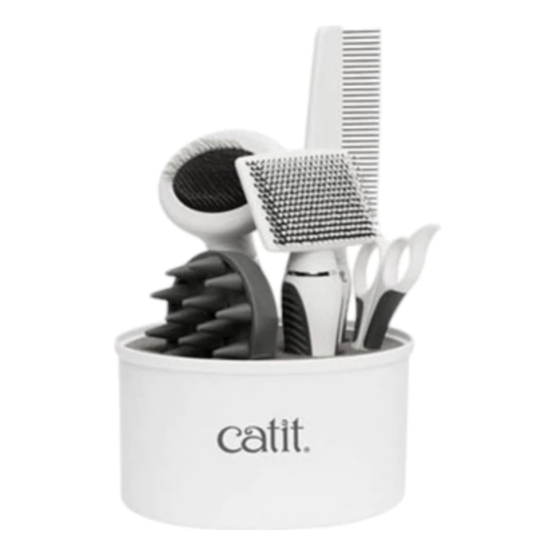 El Catit Grooming Kit de Pelo Corto ha sido cuidadosamente elaborado para contener todos los cepillos y peines que necesitas para cuidar el pelaje de tu gato de pelo corto. Las herramientas vienen en un recipiente protector especial, que las mantiene en posición vertical y al alcance de la mano.