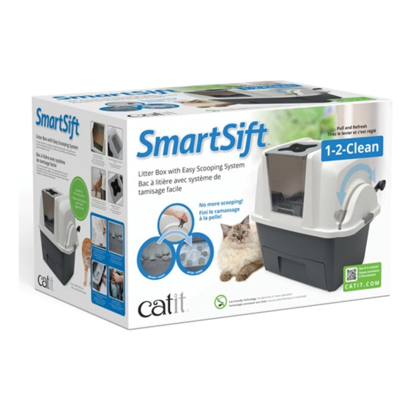 Catit Smartsift tiene una práctica palanca para retirar sin esfuerzo los grumos de desechos y refrescar el arenero de tu gato sin necesidad de recogerlo. El diseño antifugas del arenero ayuda a evitar que la arena se acumule y utiliza el sistema de filtro Airsift para un control eficaz de los olores.