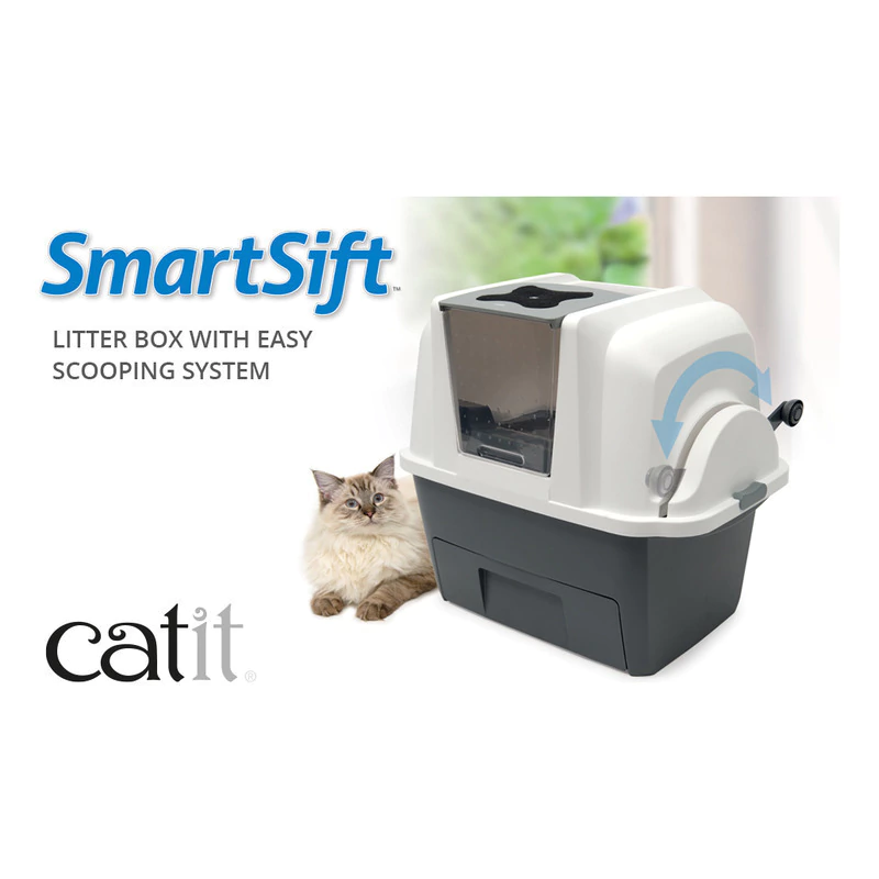 Arenero espacioso con gran abertura para gatos de todos los tamaños: El Catit SmartSift es cómodamente espacioso para gatos de todos los tamaños. Está cerrado para que tu gato tenga una privacidad óptima, y su amplia entrada viene con una puerta abatible que no daña las patas y que se puede quitar cuando sea necesario.