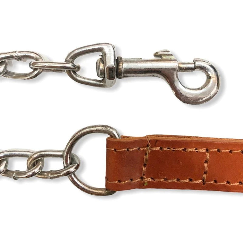 Manija de cuero suela engrasado con cadena y mosquetón.