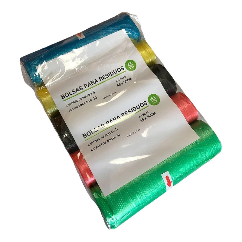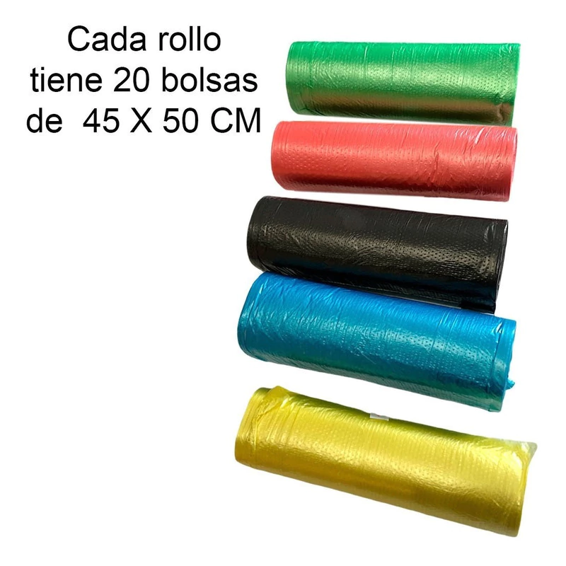 Pack X 5 rollos de 20 bolsas para reciclaje o desperdicios 45 X 50 Cm