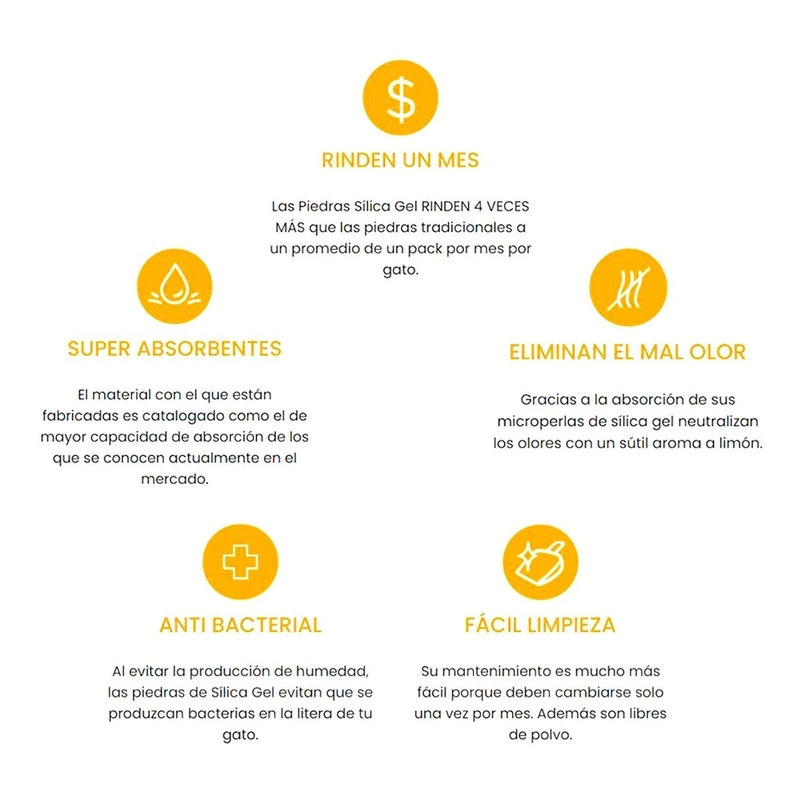 Absorbe y controla olores y debido a los microcristales neutraliza los olores. No se pega a las patas del gato ni emana polvos.