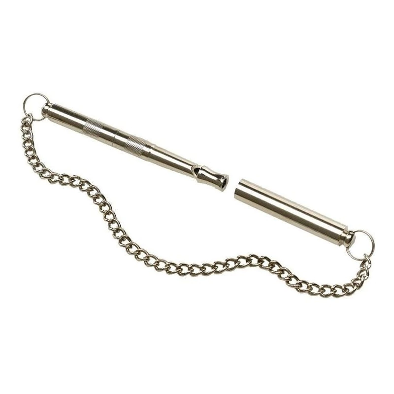 silbato para perros de adiestrar ultrasónico de latón niquelado con cadenas de 20 cm