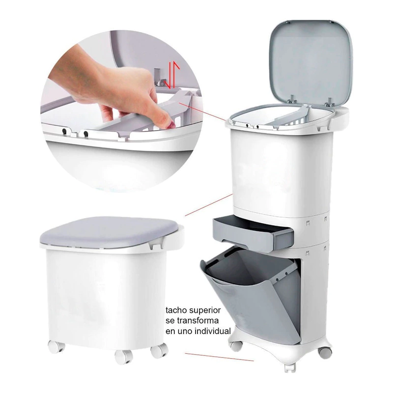 Uno de 42 Litros de 3 contenedores y un tacho plegable.